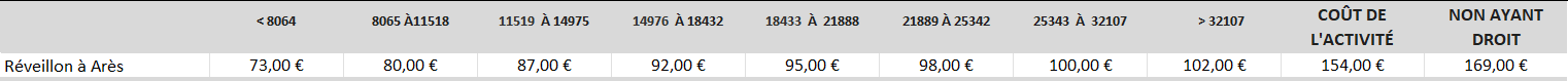 Tarifs :
