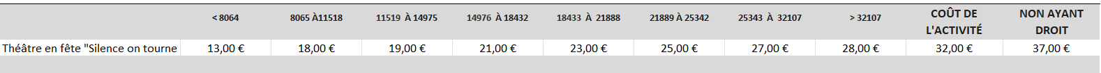 Tarifs :
