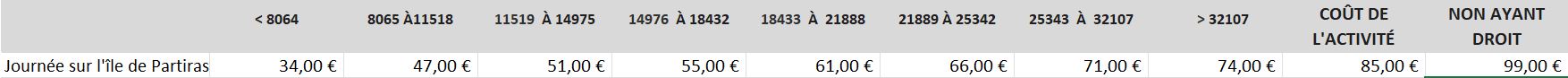 Tarifs :